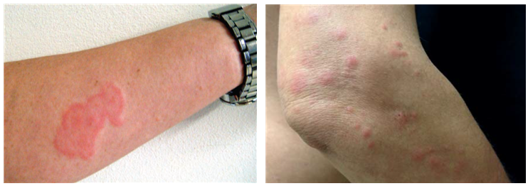 - 모기물린 자국과 비슷하나, 주로 옷에 가려지지 않은 팔, 손, 목, 다리 등 노출부위를 물며, 혈관을 잘 찾지 못해서 2~3곳을 연달아 물어 일렬이나 원형으로 자국이 생김