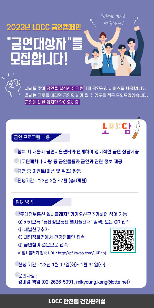 새해를 맞아 갓생살기💪를 위해 금연을 결심한 임직원에게 금연관리 서비스를 제공합니다.